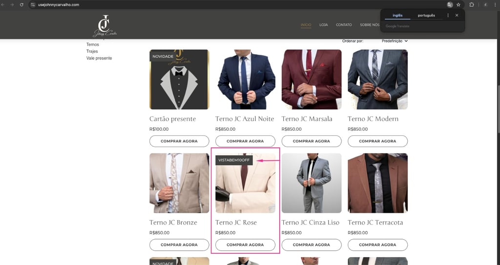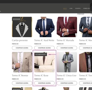 Para participar da promoção Vista-se Bem, existem algumas regras que você deve considerar. Em primeiro lugar, a promoção é válida somente para os produtos selecionados que contem a tag VISTABEM10OFF como podemos ver na imagem a seguir: